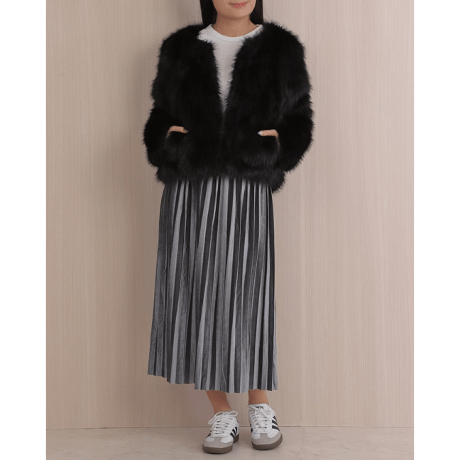 華やかさと軽やかさを兼ね備えたベロア調のプリーツスカート。